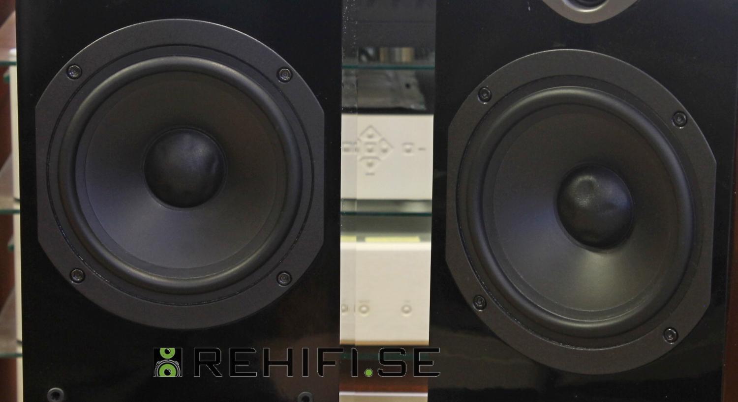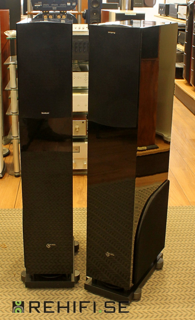Information: Begagnade golvhögtalare i gott skick, som så ofta med pianoblank yta finns ytliga tunna repor i den på främst ovansidan.