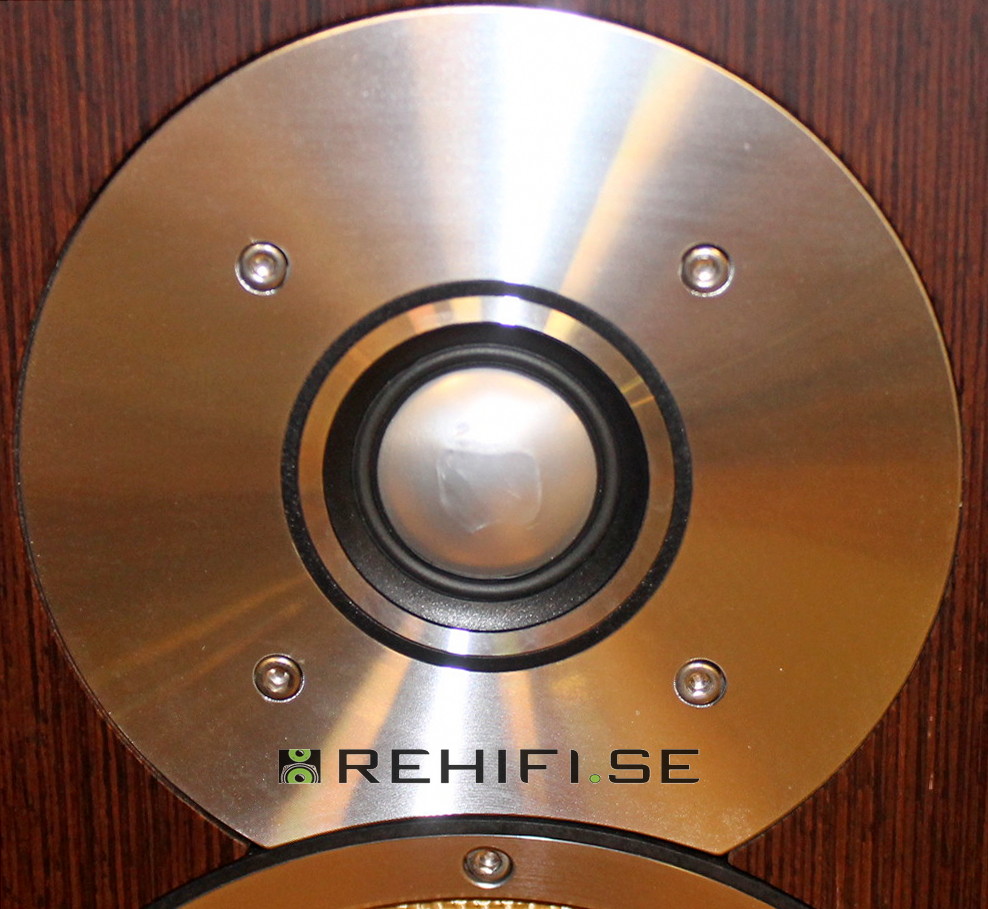Bestyckad med 6,5 tums baselement, 5 tums kantlöst mellanregister med kon i kevlar samt diskant med metallmembran.