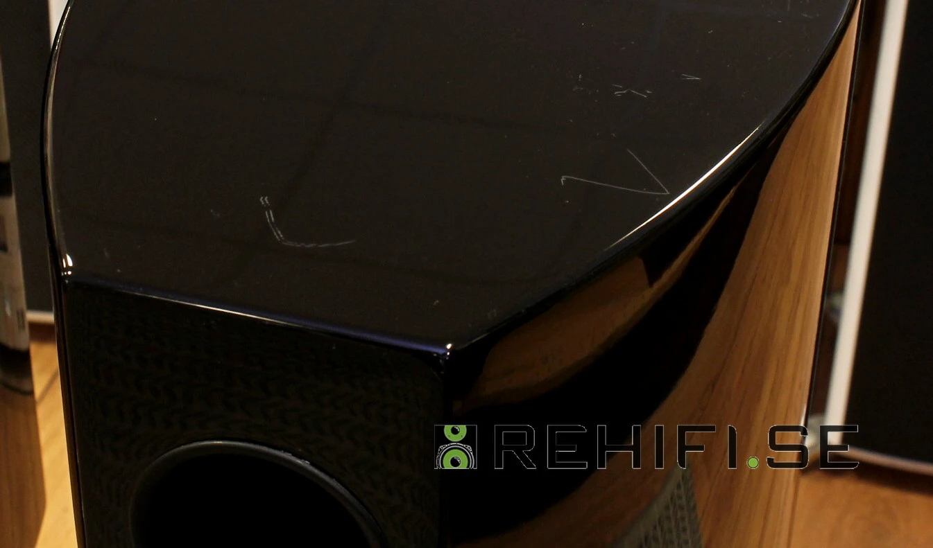relativt ytliga repor på ena högtalarens ovansida.