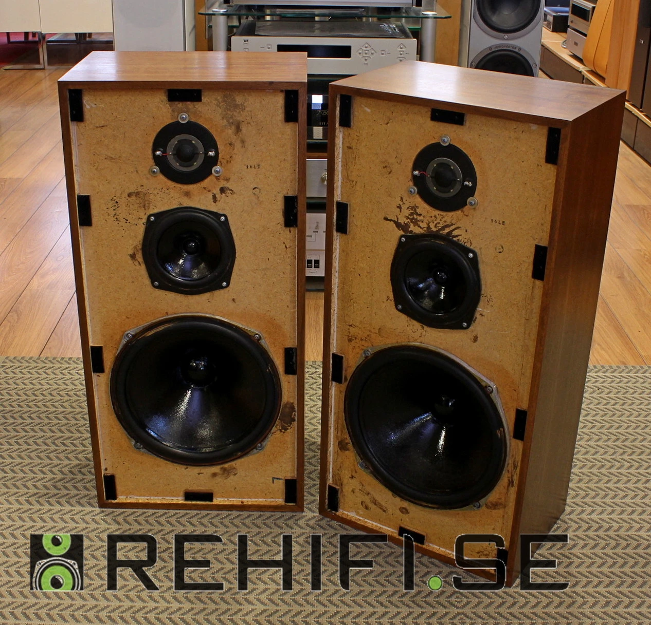 Bestyckade med 12 tums baselement, 6 tums mellanregister samt 1 tums diskant.
