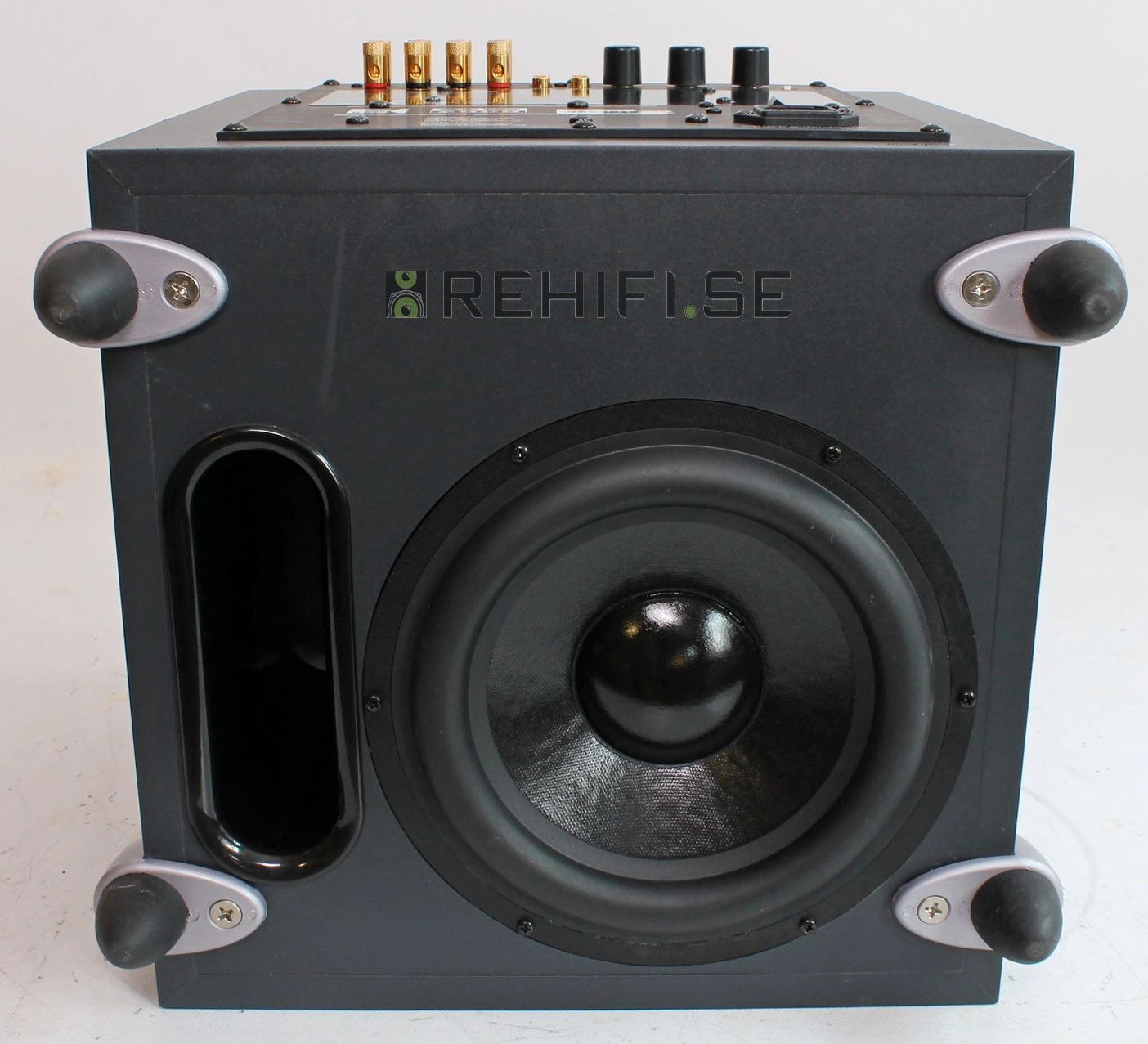 Subwoofern är bestyckad med ett nedåtriktat 8 tums element samt en 250 Watts förstärkare.