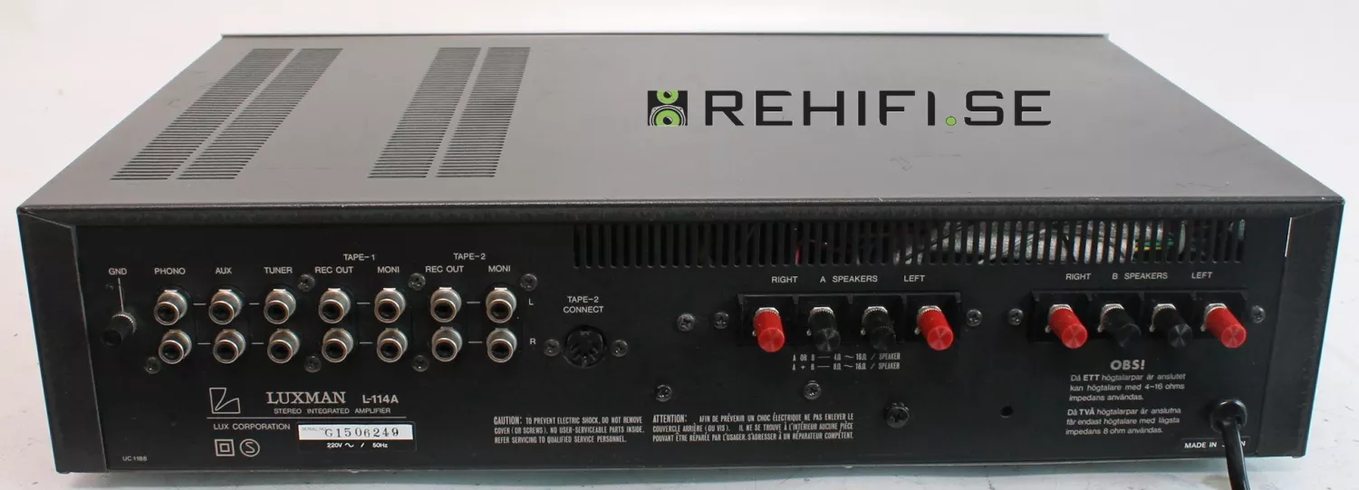 Förstärkaren Luxman L-114A är funktionstestad hos Rehifi.