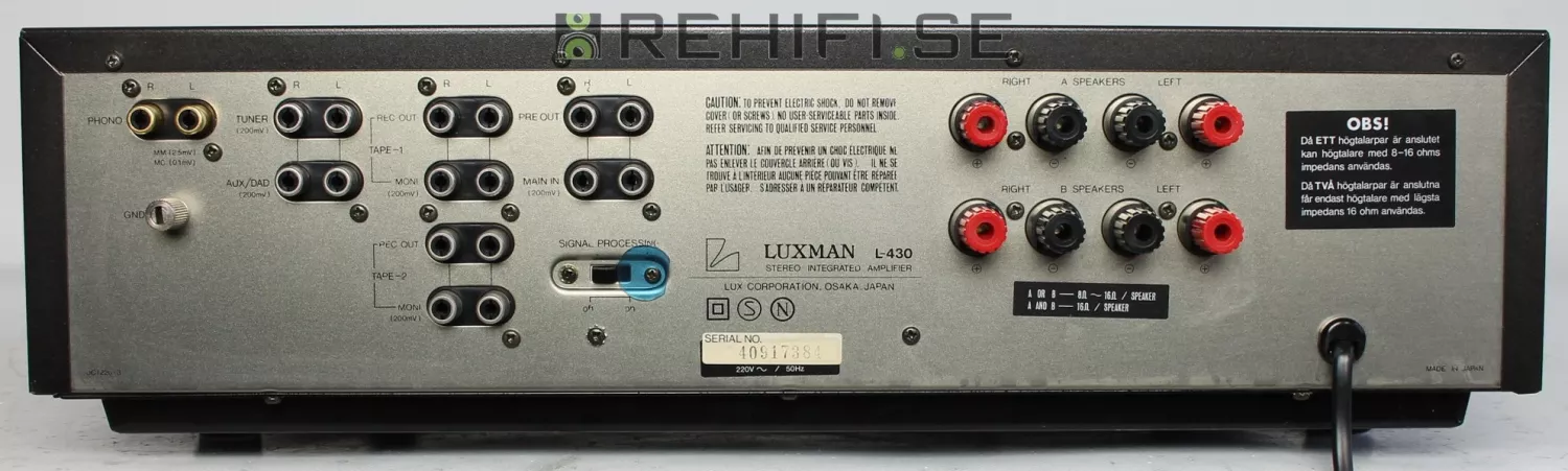 Förstärkaren Luxman L-430 är funktionstestad hos Rehifi.