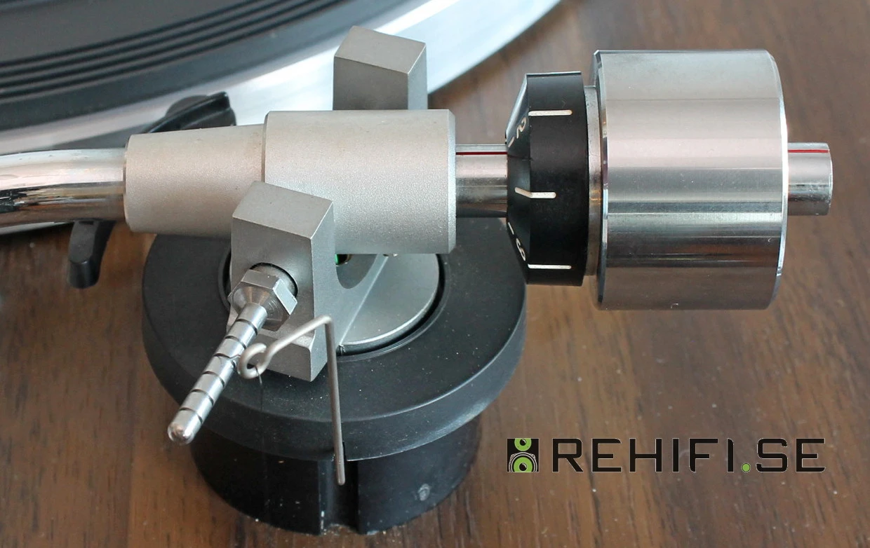 Bra S-formad tonarm med avtagbart pickupskal med standard SME-fäste.