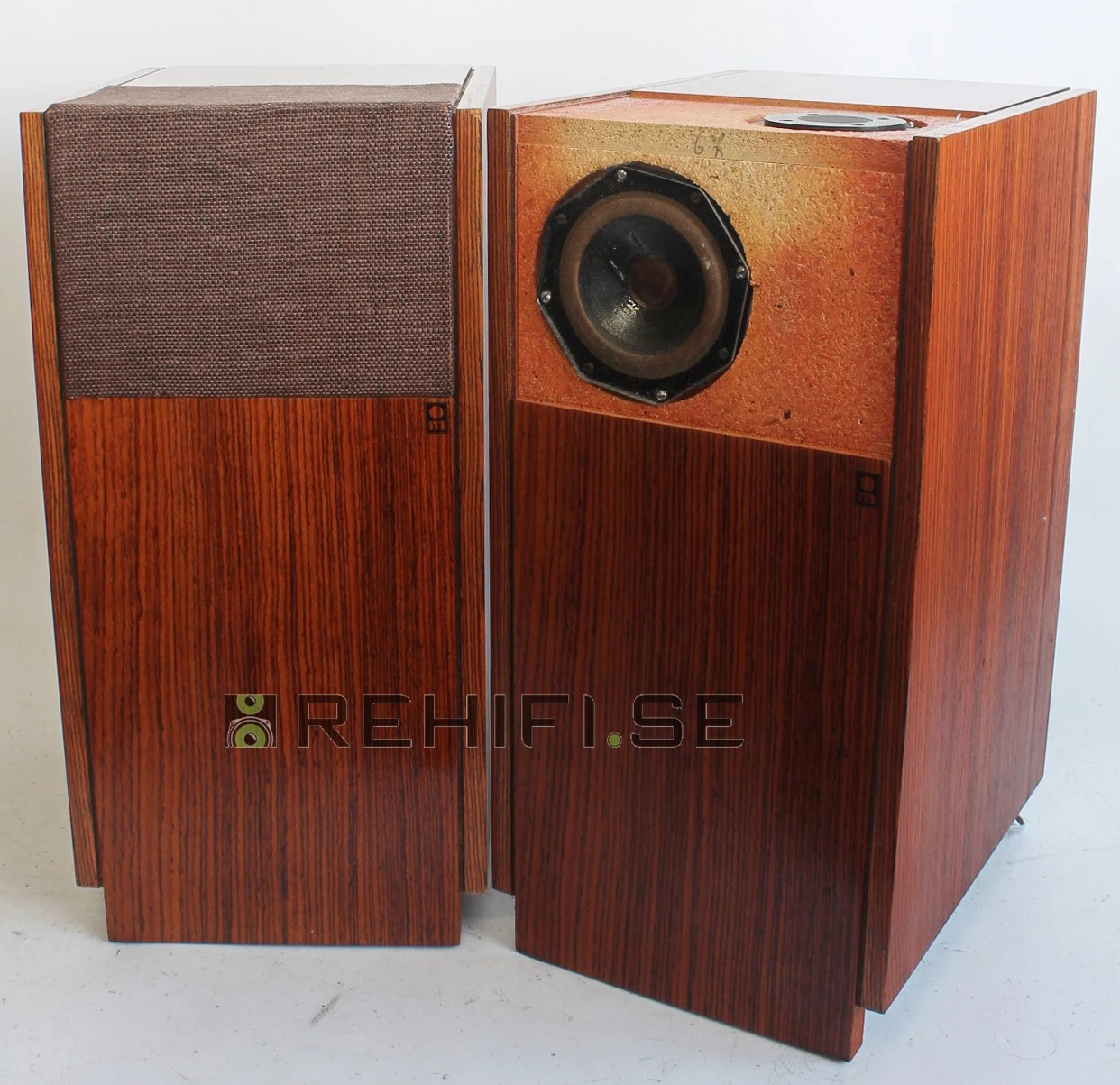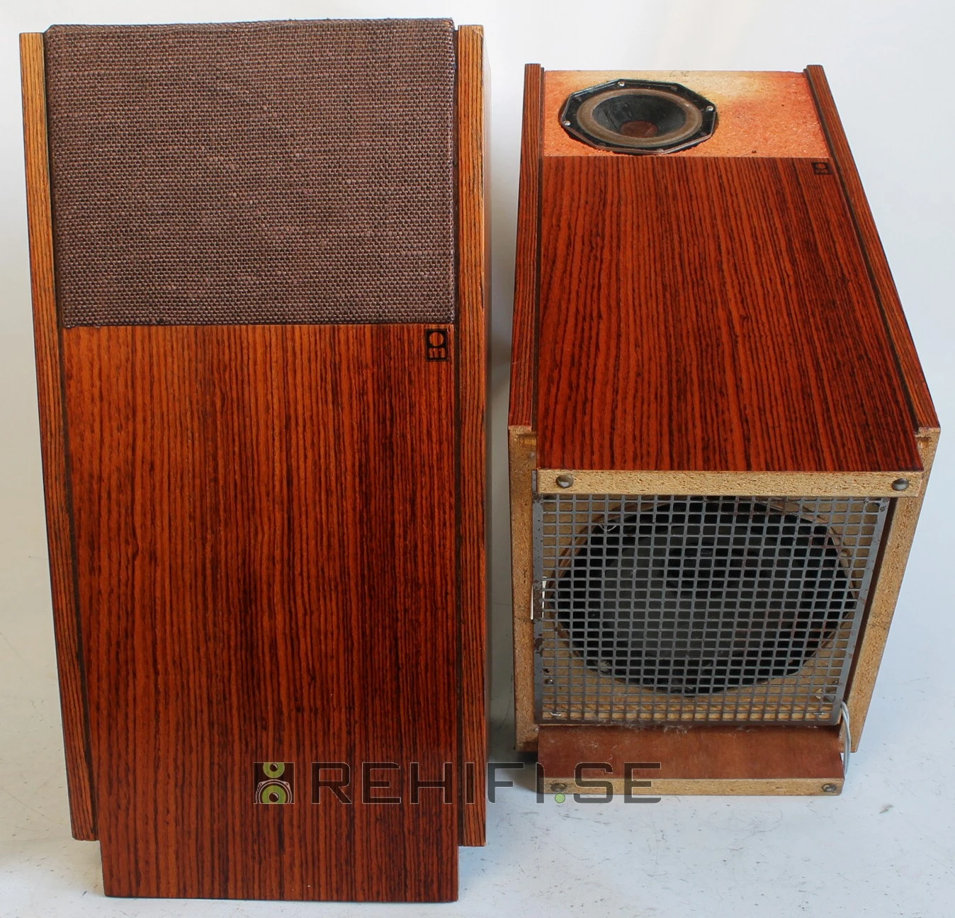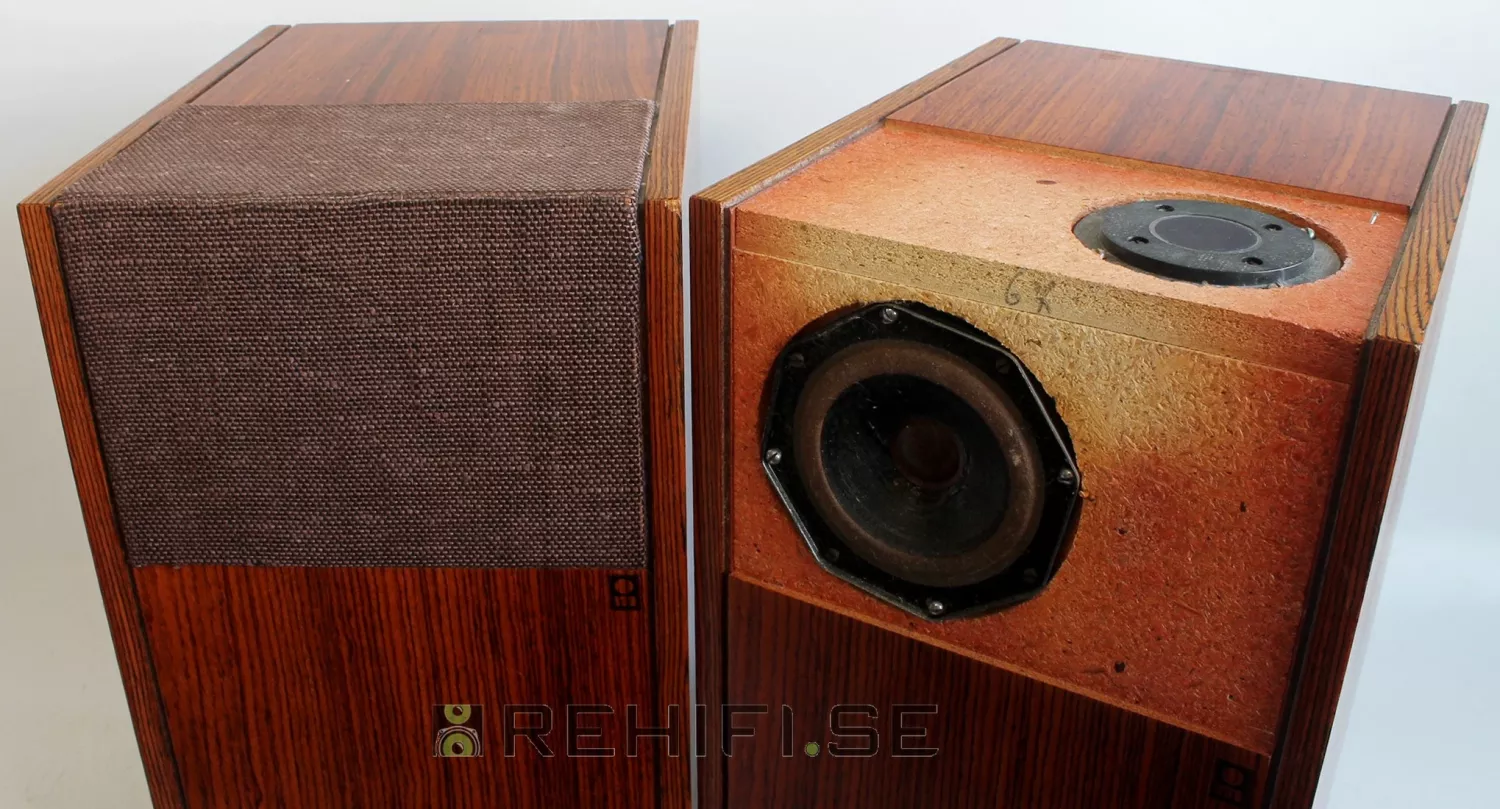 Högtalarna är i gott skick med lite slitet tyg på högtalarfronterna. Alla element hela och fina.