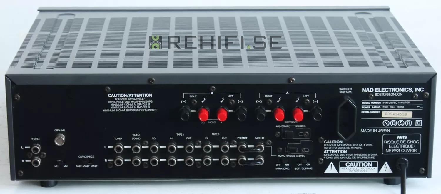 Förstärkaren NAD 3400 är funktionstestad hos Rehifi.