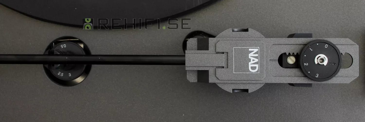 Tonarm med justerbar dämpning för anpassning till olika pickuper.