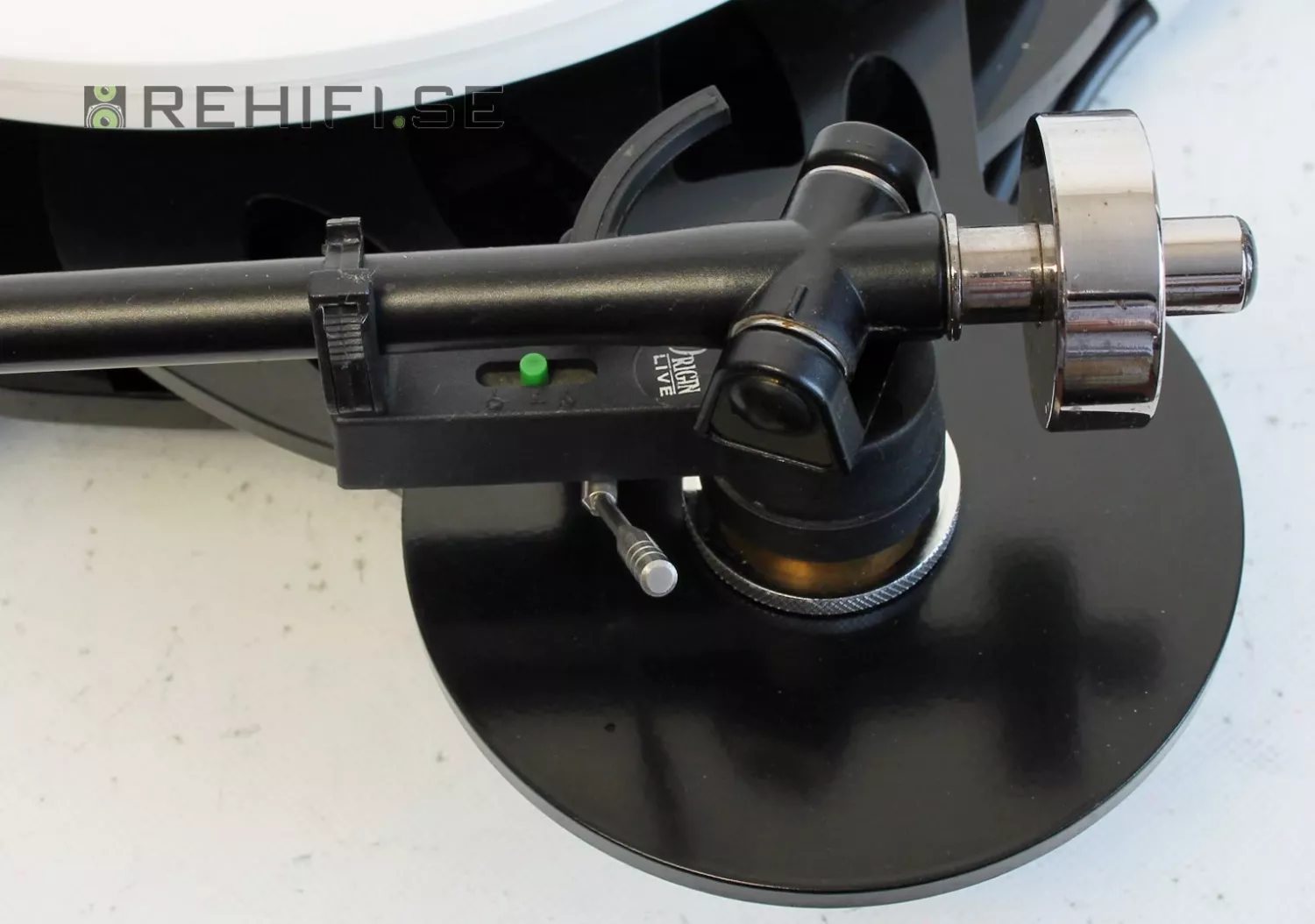 Tonarmen är en Origin Live modifierad RB 250 med bättre internkablage och högkvalitativ signalkabel med guldpläterade RCA kontakter.