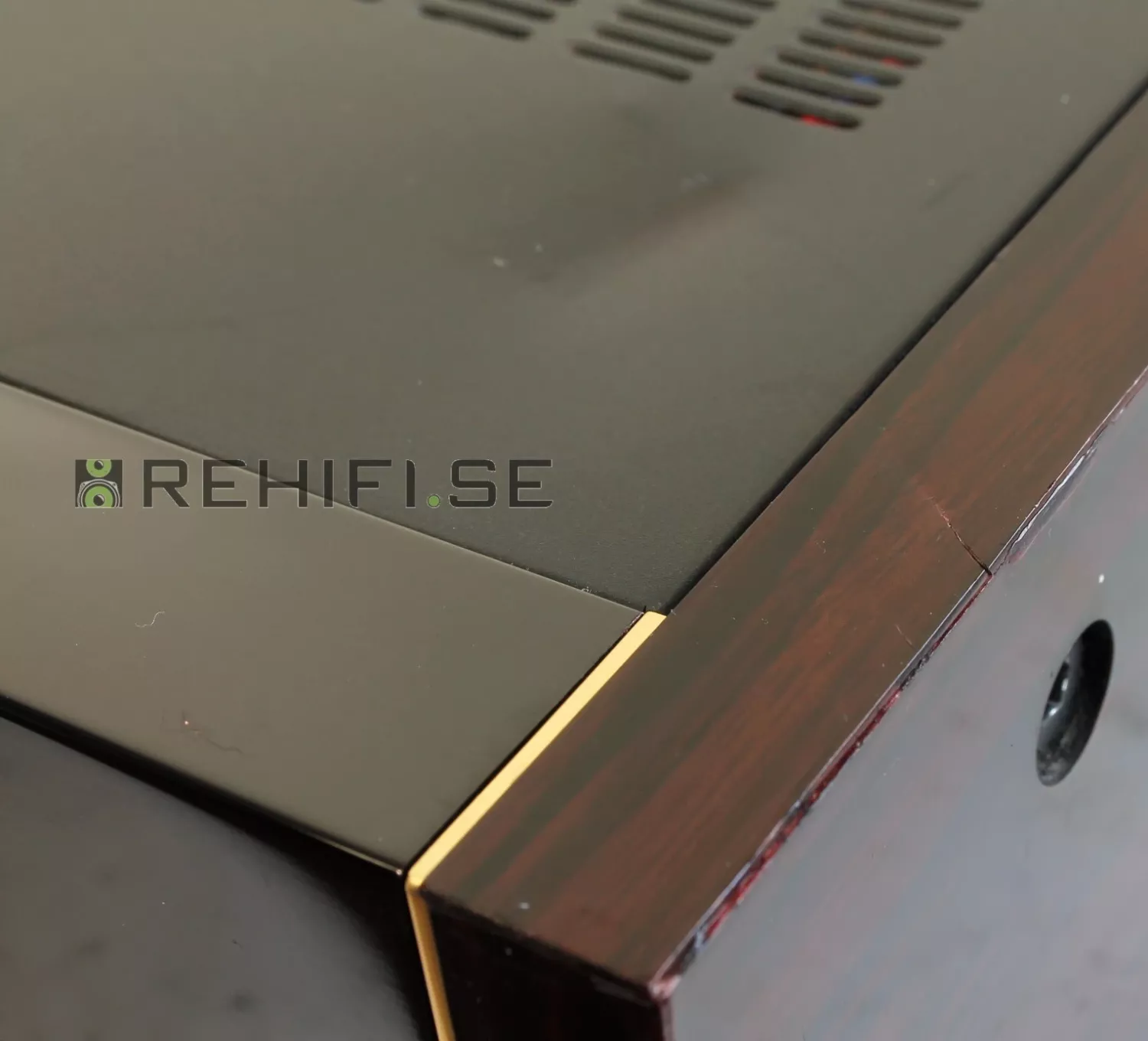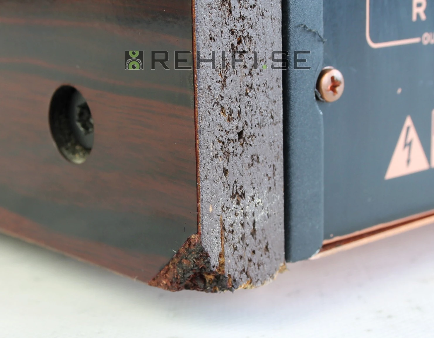 En skada i ena träsidans bakre/undre hörn.