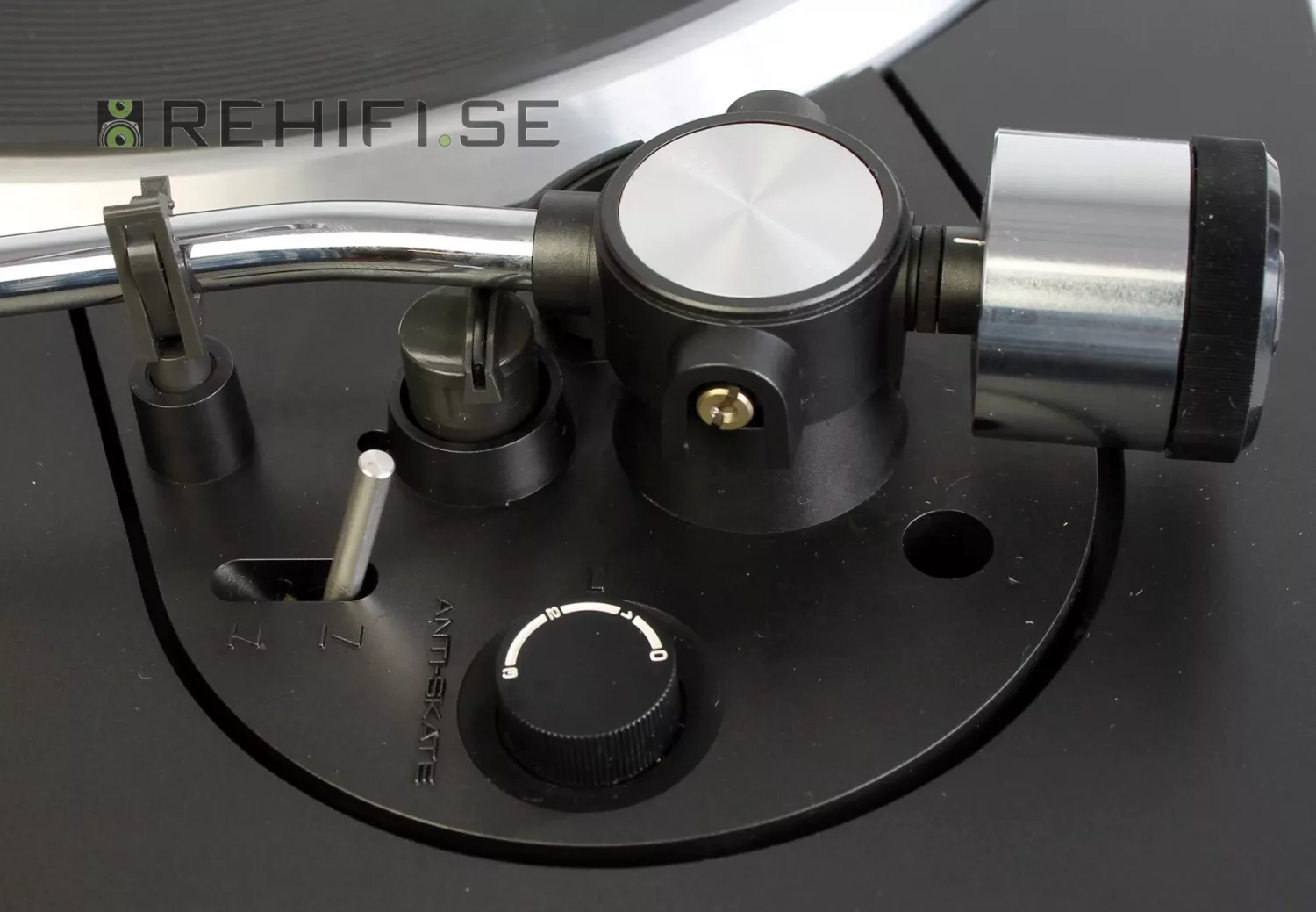 Bra S-formad tonarm med avtagbart pickupskal med standard SME-fäste.