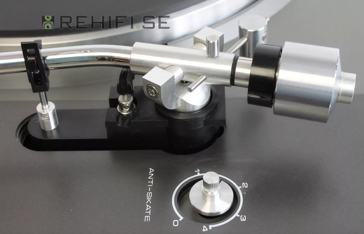 Bra S-formad tonarm med avtagbart pickupskal med standard SME-fäste.