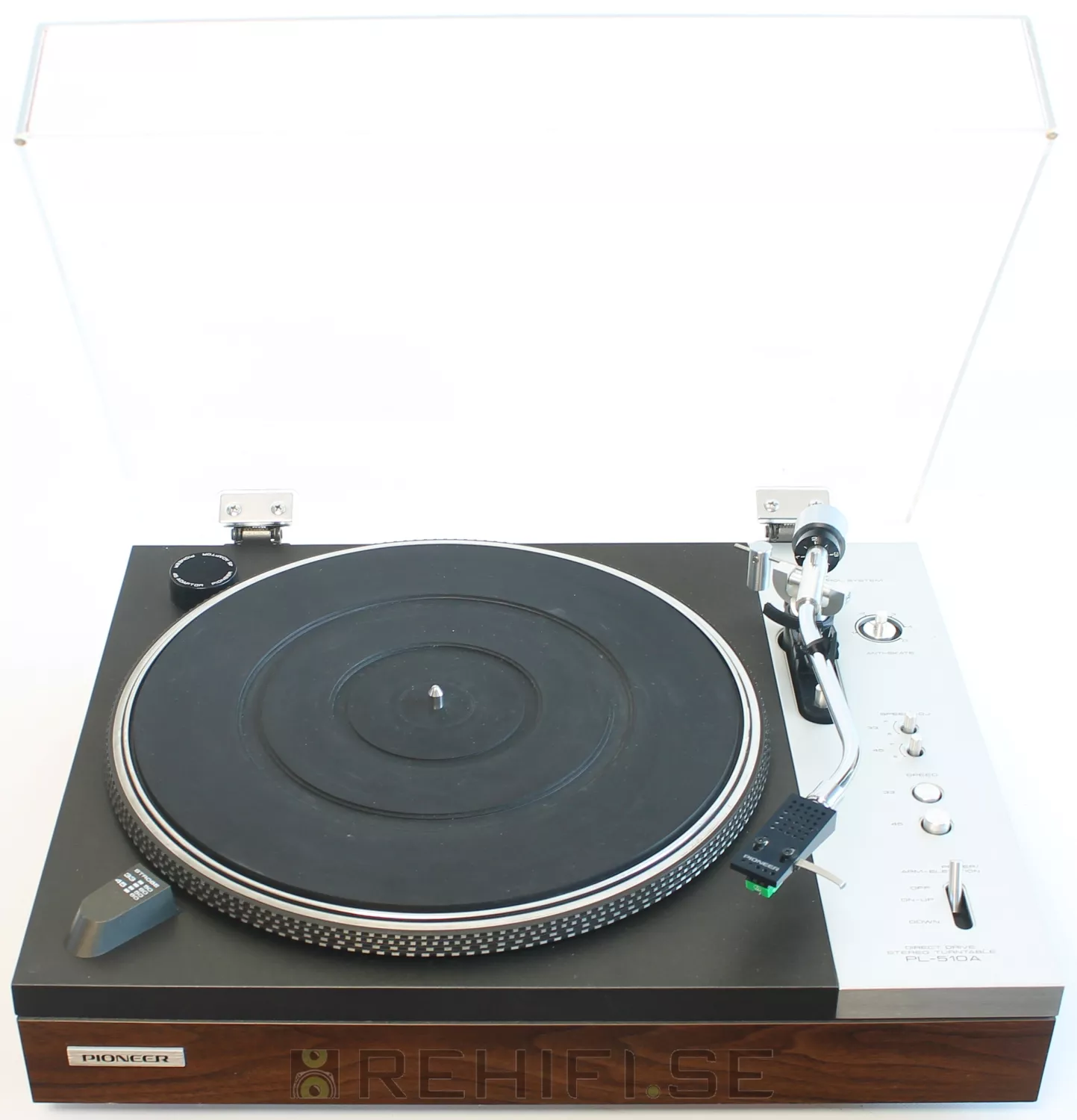 Skivspelaren Pioneer PL-510A är funktionstestad hos Rehifi och en bra S formad tonarm.