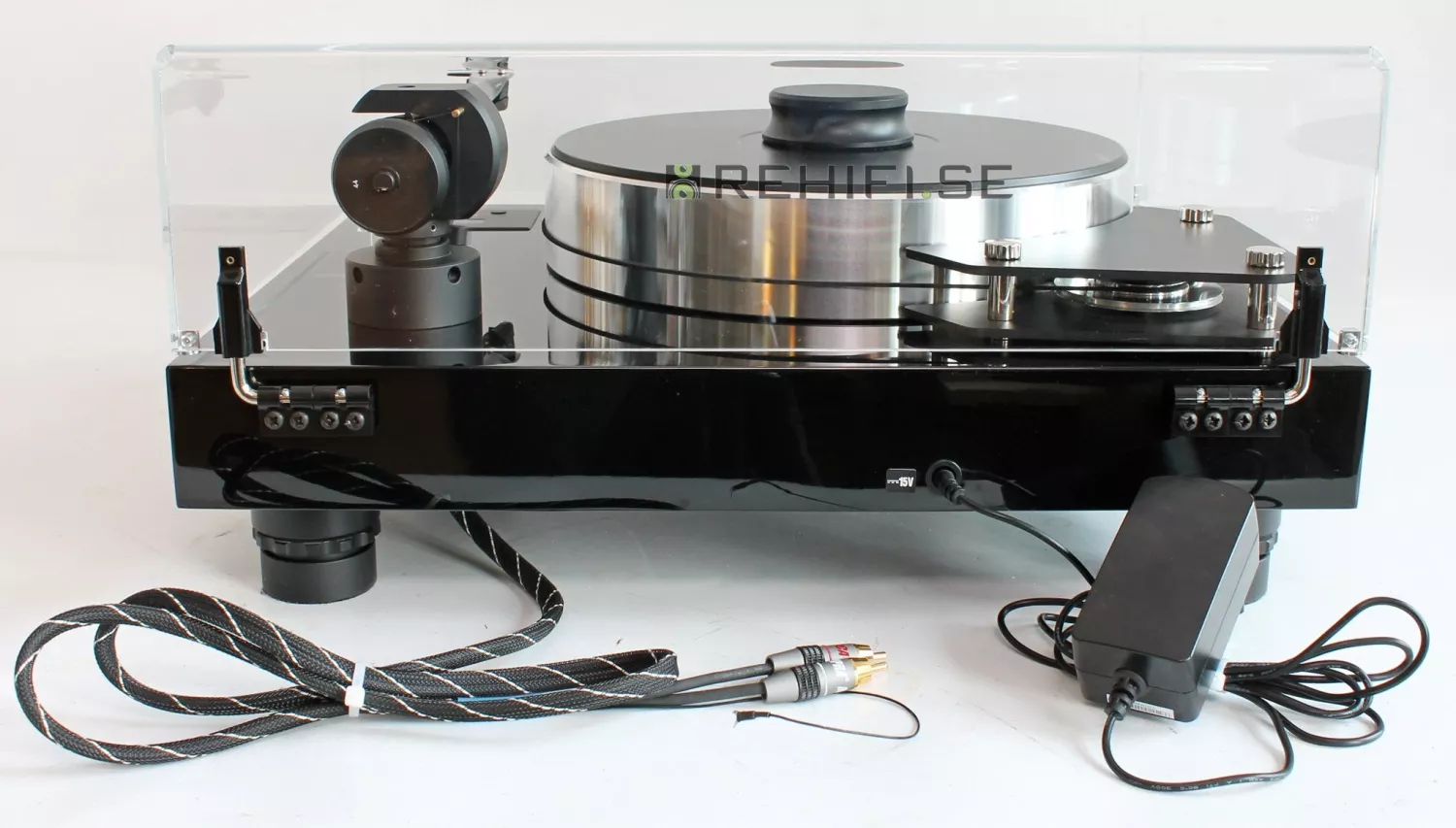 Information: Begagnad tung, remdriven skivspelare med separat nätdel.