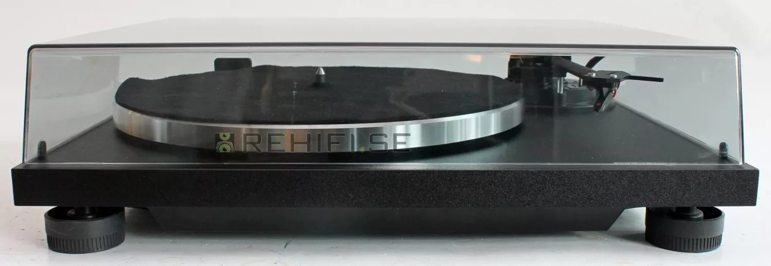 Remdriven, manuell skivspelare med DC motor.