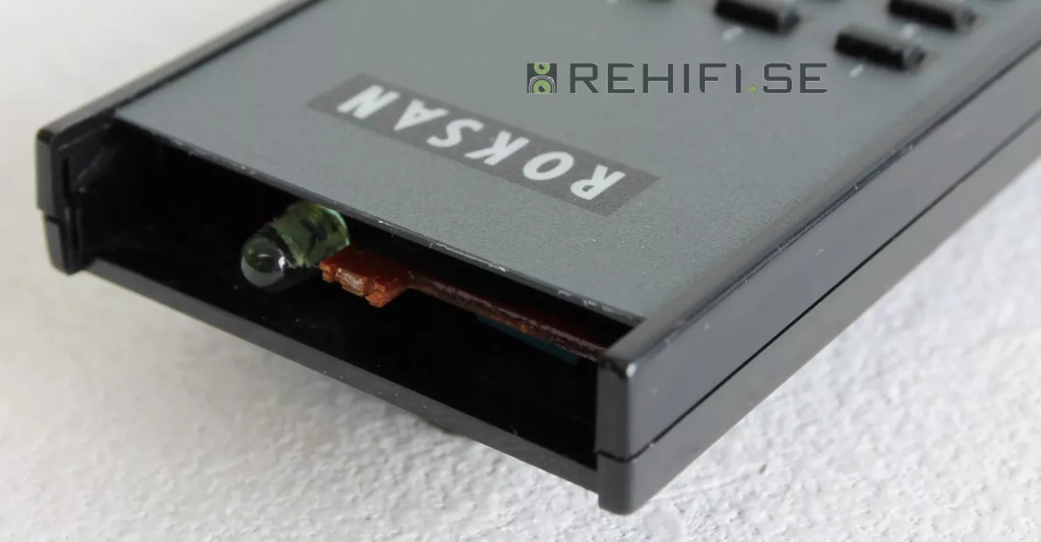Fjärrkontrollens fönster framför IR-sändaren saknas (påverkar ej funktionen).