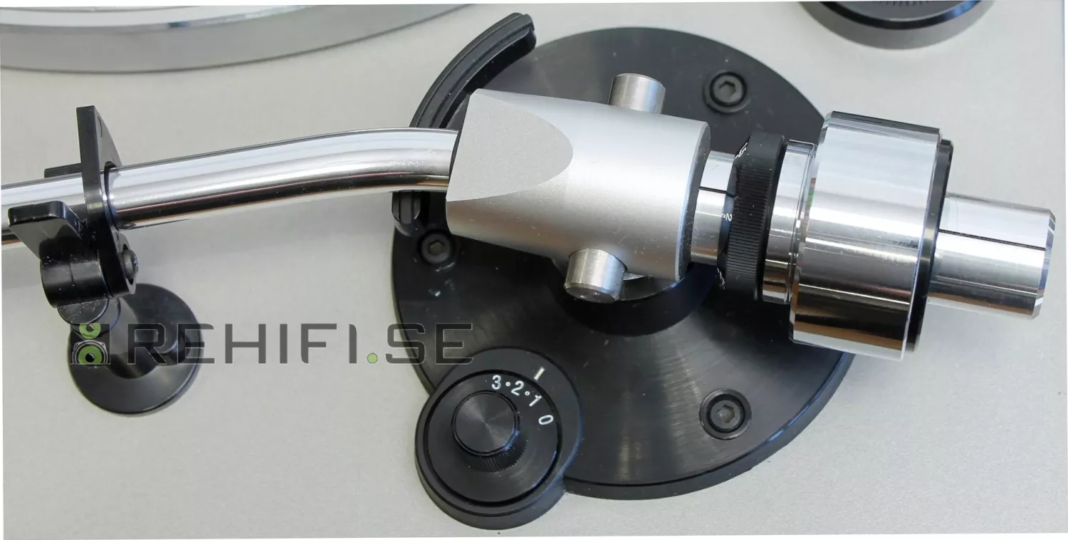 Bra S-formad tonarm med avtagbart pickupskal med standard SME-fäste.