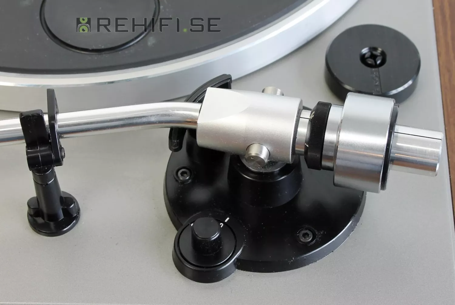Bra S-formad tonarm med avtagbart pickupskal med standard SME-fäste.