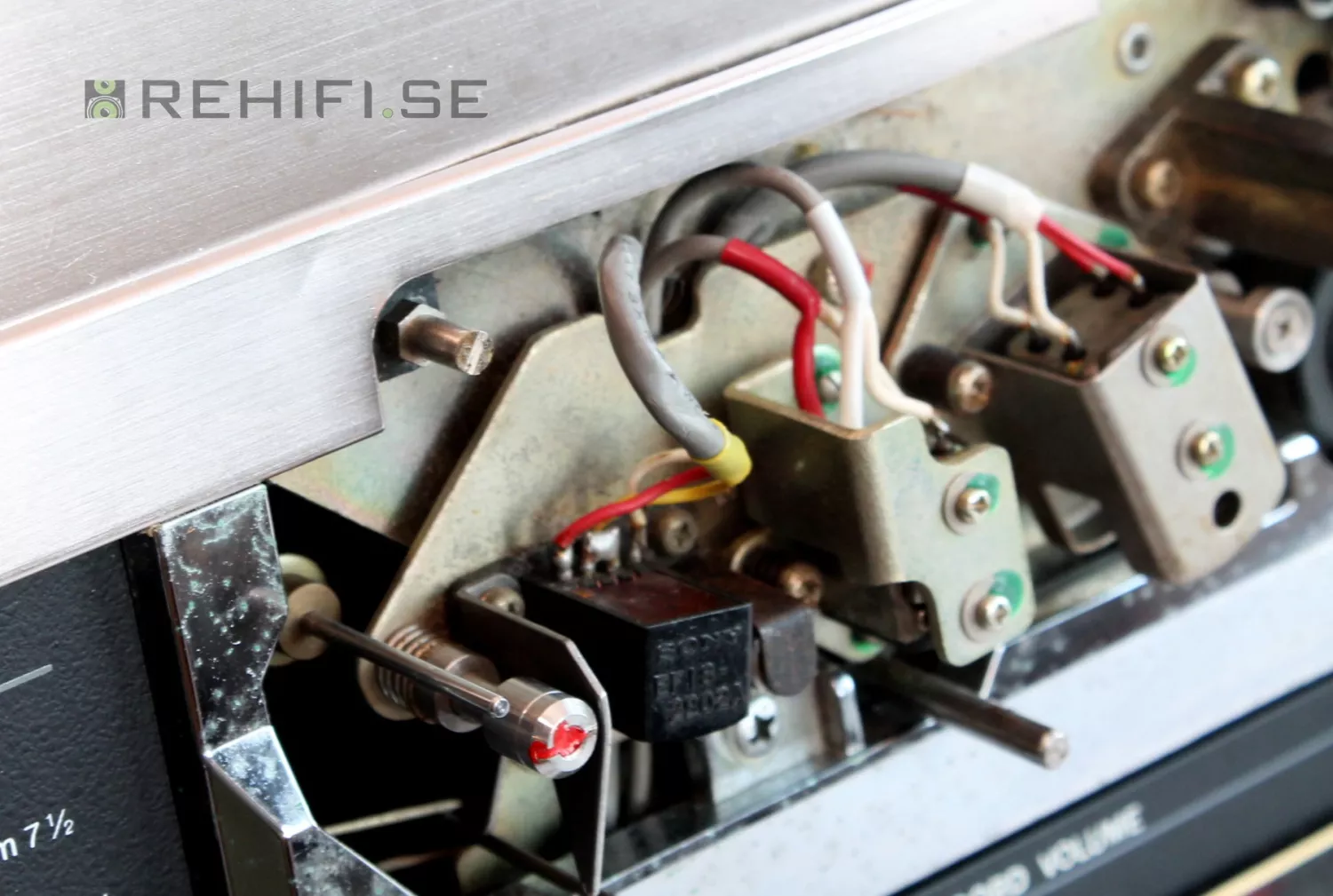 fungerar inte, lösa delar i mekaniken, ena fästpiggen till luckan framför tonhuvuden är avbruten.