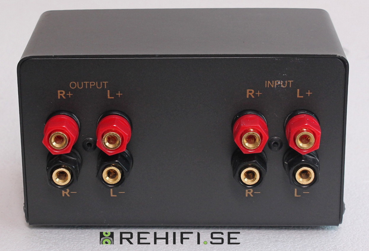 Kopplas in mellan förstärkare/slutsteg och högtalare.
