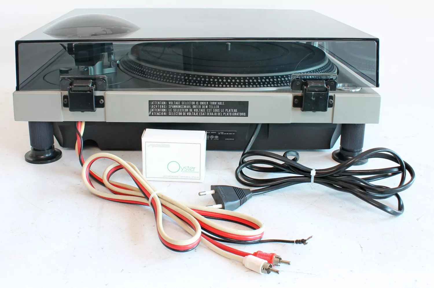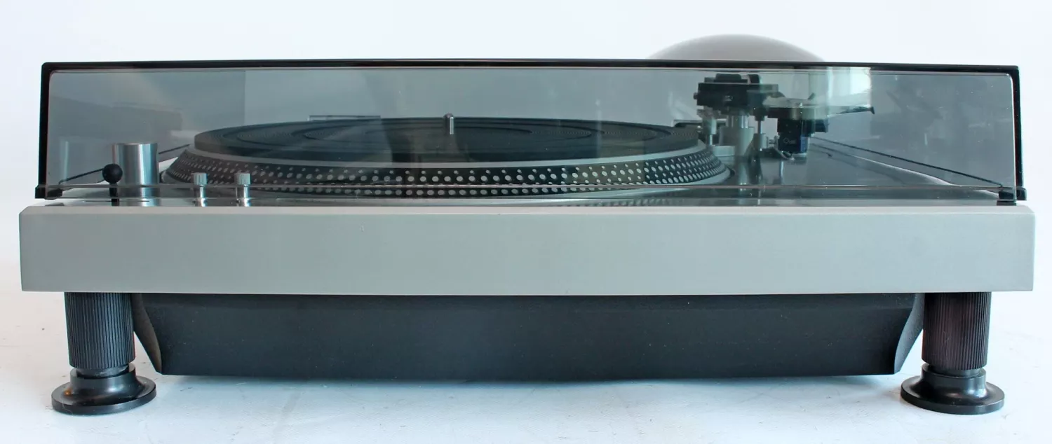 Klassisk, japansk, direktdriven, manuell skivspelare med tungt gjutet chassi.