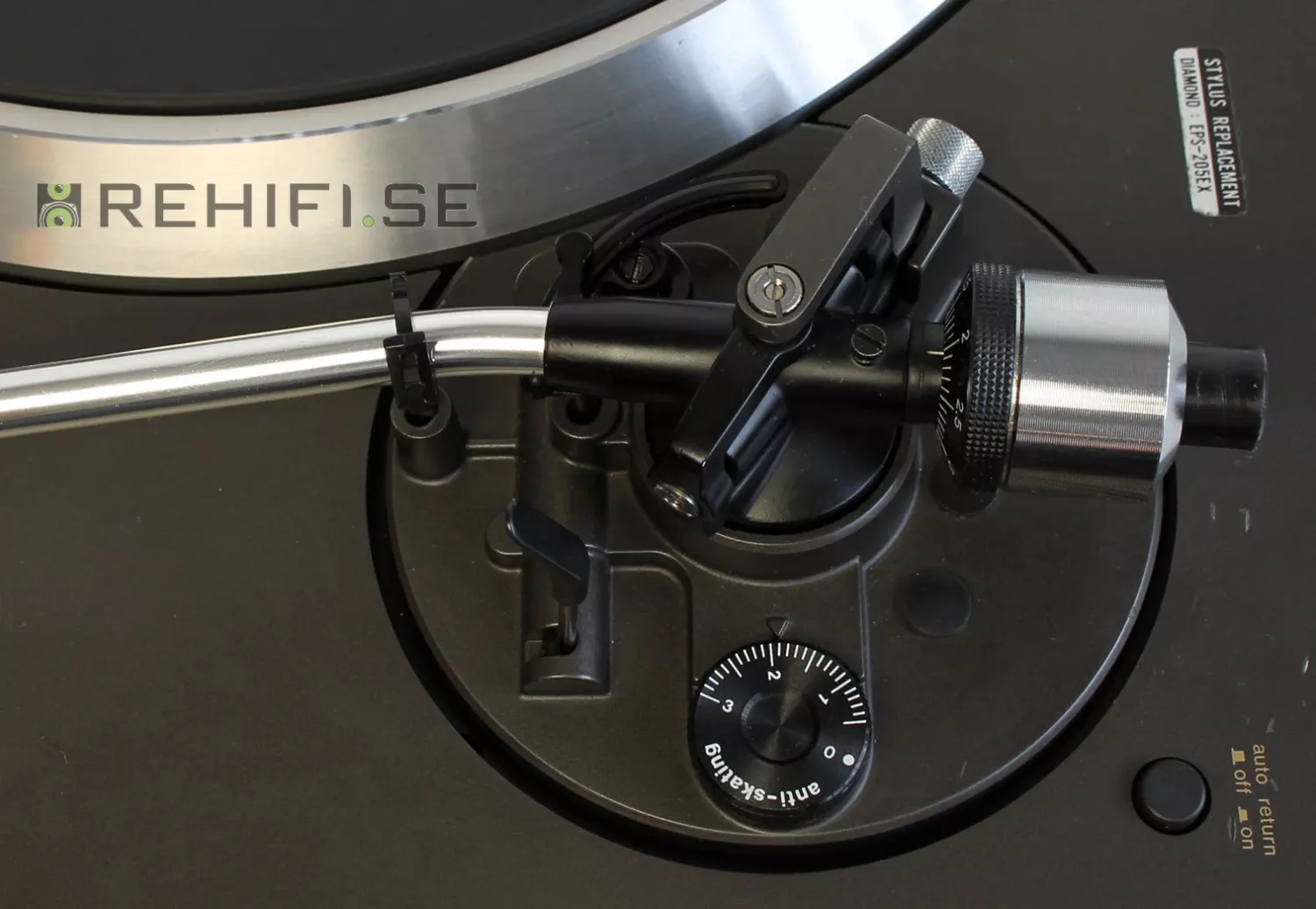 Bra S-formad tonarm som även har VTA-justering.