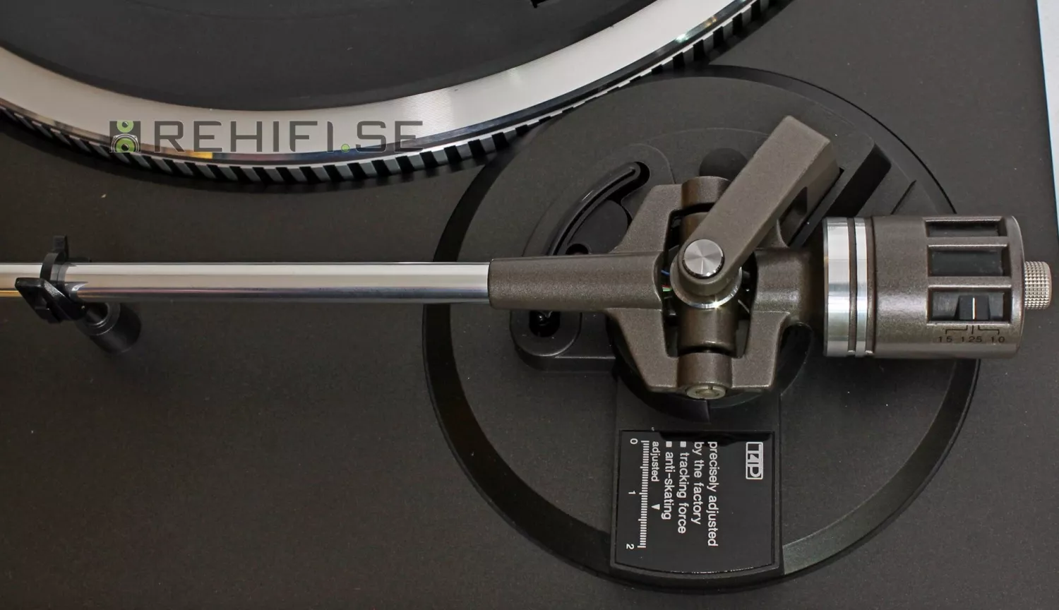 Skivspelaren är nyservad och injusterad.