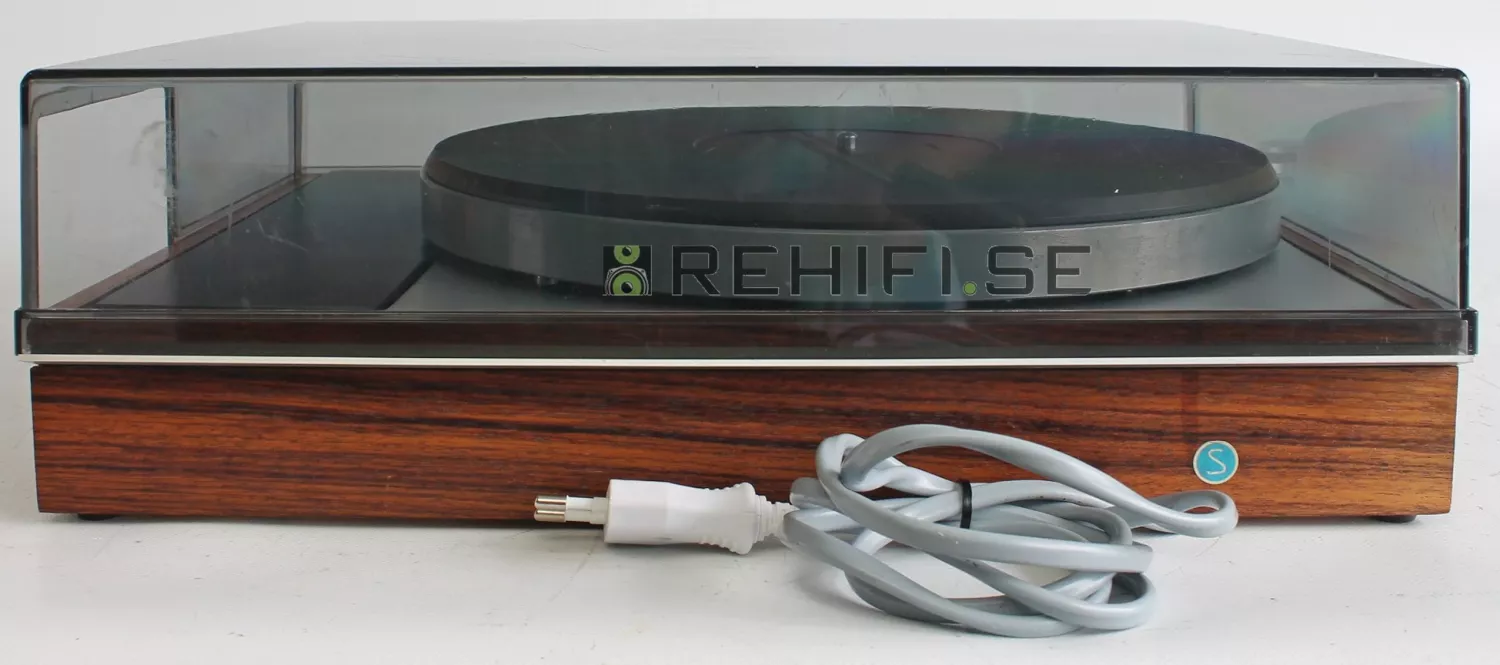 Detta utförande (B) innebär att den såldes utan tonarm som ny och därför inte har hål efter reglage som plockats bort.