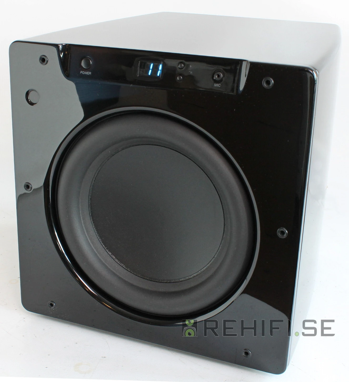 Information: Begagnad subwoofer i mycket gott skick med ytliga tunna repor i den svarta pianolacken,